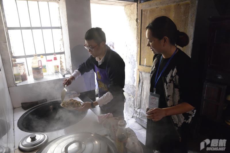 在禮堂里,30多位員工進行了簡單的活動啟動儀式,然后分成5個小組徒步到農戶家中去。一路上,員工扛著大米,拎著食材、物資,絲毫不覺著累。來到農戶家中,各個小組就開始忙碌起來,送上慰問、水果、大米、食用油等,為家中的孩子準備了小書包和零食,給農戶打掃衛生,為農戶燒一桌菜,廚房里熱火朝天,忙的不亦樂乎。